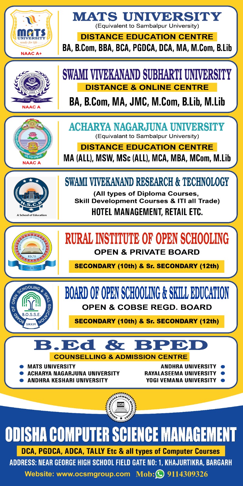Welcome to ODISHA COMPUTER SCIENCE MANAGEMENT family. Our aims is to associate large number of franchisee and partner. Every village, Gram panchayat , block, district and every state. Because our authorized partner helps to all people for profit with education, jobs and various our services.